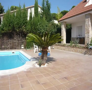 Jardín con piscina